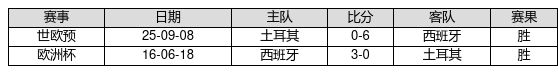 西班牙 VS 土耳其两队近10年的交战次数为2场,西班牙2胜0平0负,赢球概率为100.0%,平局概率为0.0%,输球概率为0.0%。