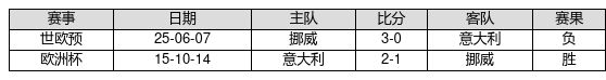 意大利 VS 挪威两队近10年的交战次数为2场,意大利1胜0平1负,赢球概率为50.0%,平局概率为0.0%,输球概率为50.0%。