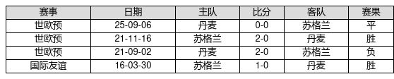 苏格兰 VS 丹麦两队近10年的交战次数为4场,苏格兰2胜1平1负,赢球概率为50.0%,平局概率为25.0%,输球概率为25.0%。