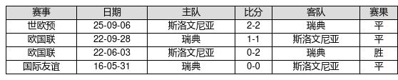 瑞典 VS 斯洛文尼亚两队近10年的交战次数为4场,瑞典1胜3平0负,赢球概率为25.0%,平局概率为75.0%,输球概率为0.0%。