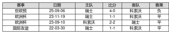 科索沃 VS 瑞士两队近10年的交战次数为4场,科索沃0胜3平1负,赢球概率为0.0%,平局概率为75.0%,输球概率为25.0%。