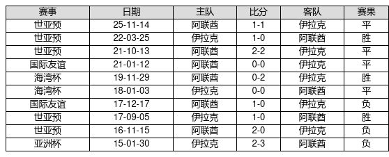 伊拉克 VS 阿联酋两队近10年的交战次数为10场,伊拉克3胜4平3负,赢球概率为30.0%,平局概率为40.0%,输球概率为30.0%。