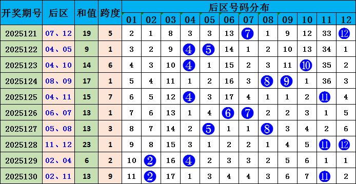 奇偶分析:最近8期后区奇偶比为6:10,奇数号码走势较冷,偶数号码走势较热。本期后区两码概述保举:03、11。